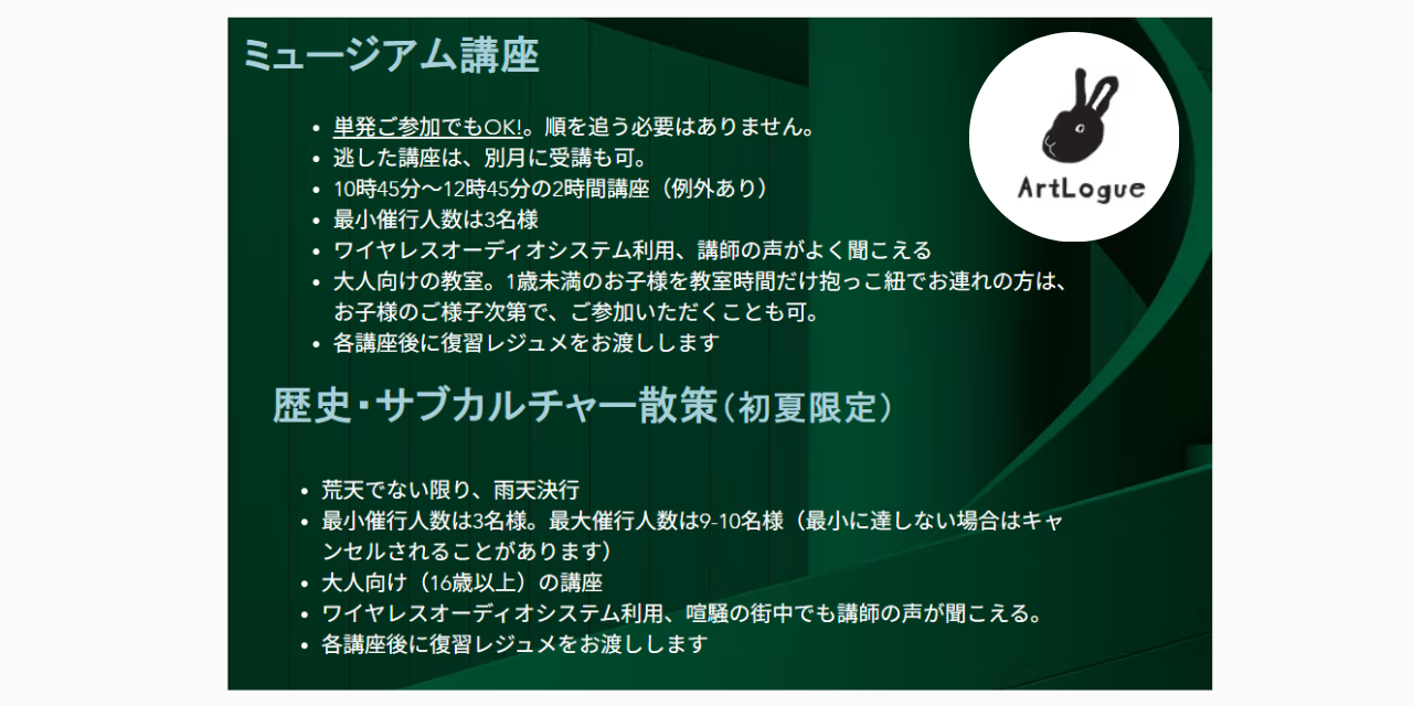 ロンドンの美術館・博物館の案内を日本語でしてくれる「アートローグ」の講座でした。(もう本当におススメです!)