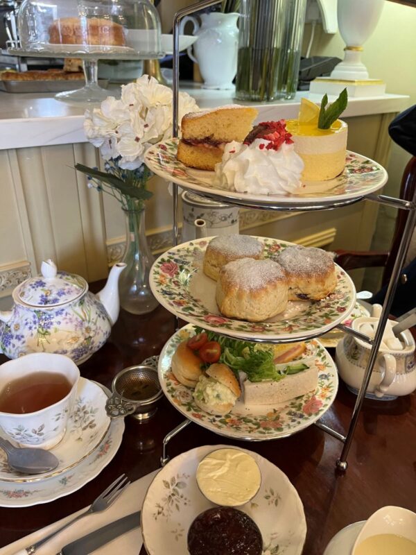 メニューは、クリームティー(写真)やアフタヌーンティーのほか、エッグペネディクトなどのお食事系も豊富。グループの中で異なるメニューを頼んで、楽しんでいらっしゃる方もいました。